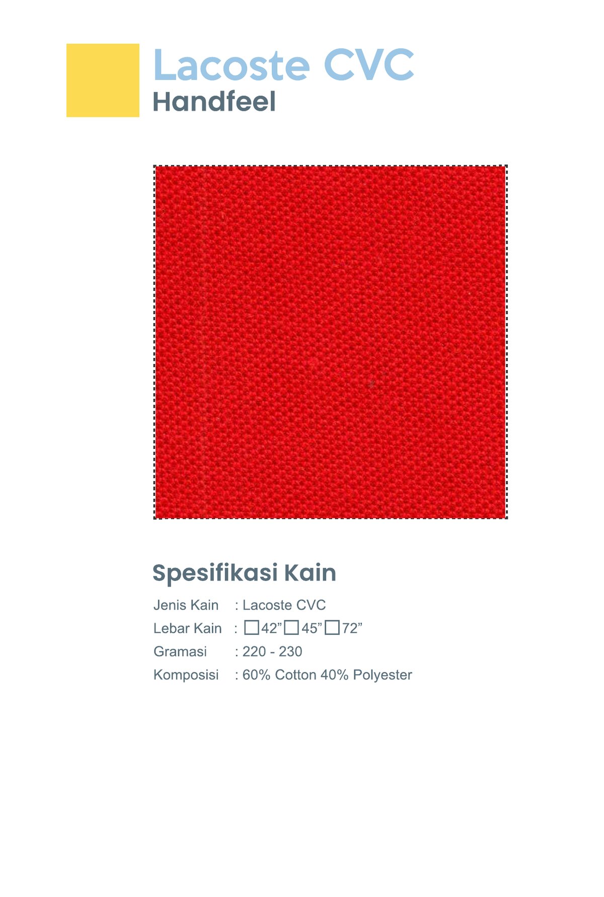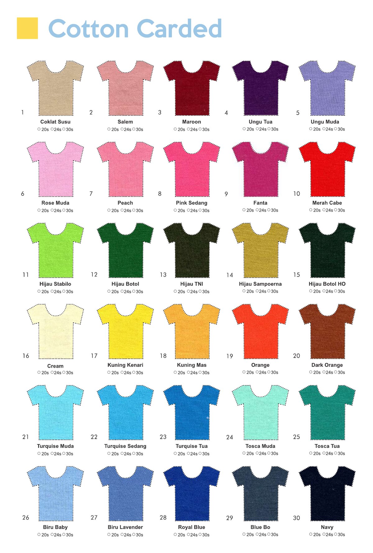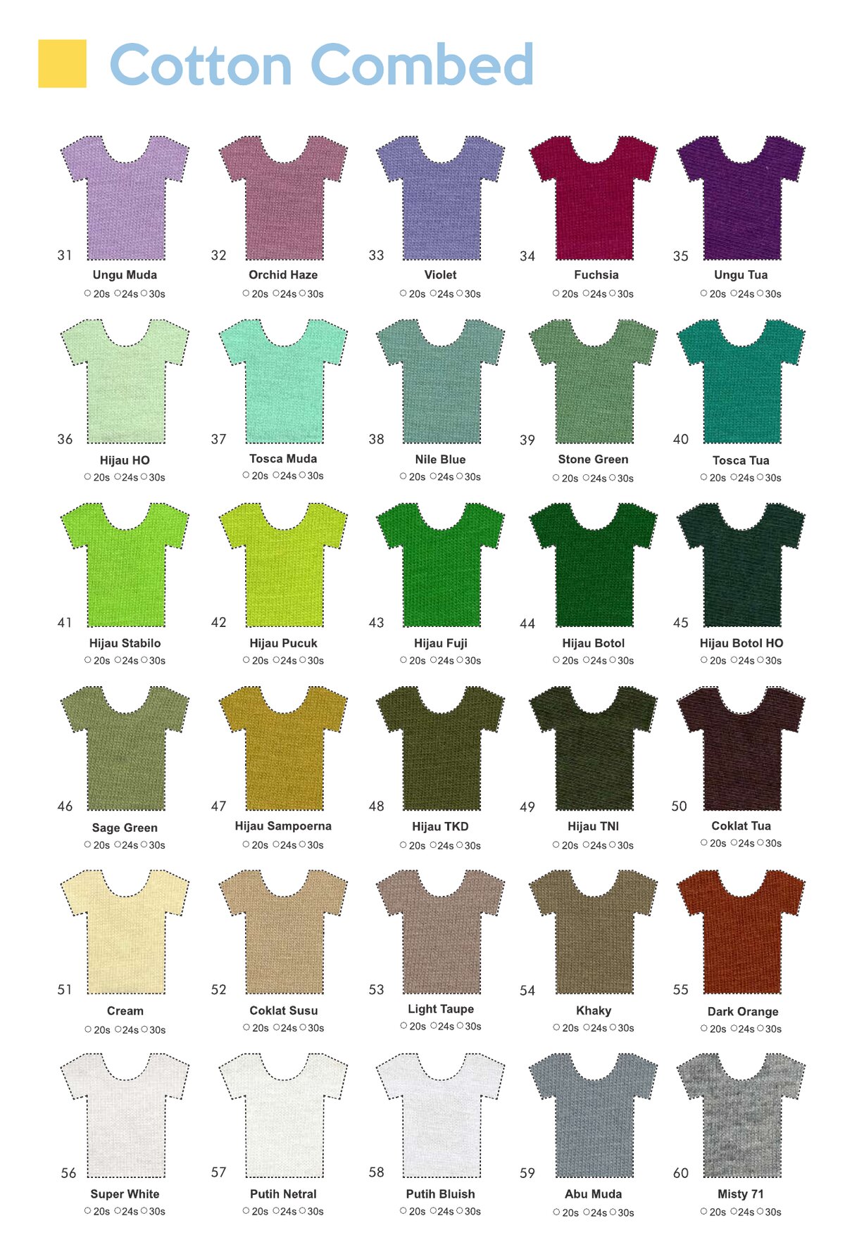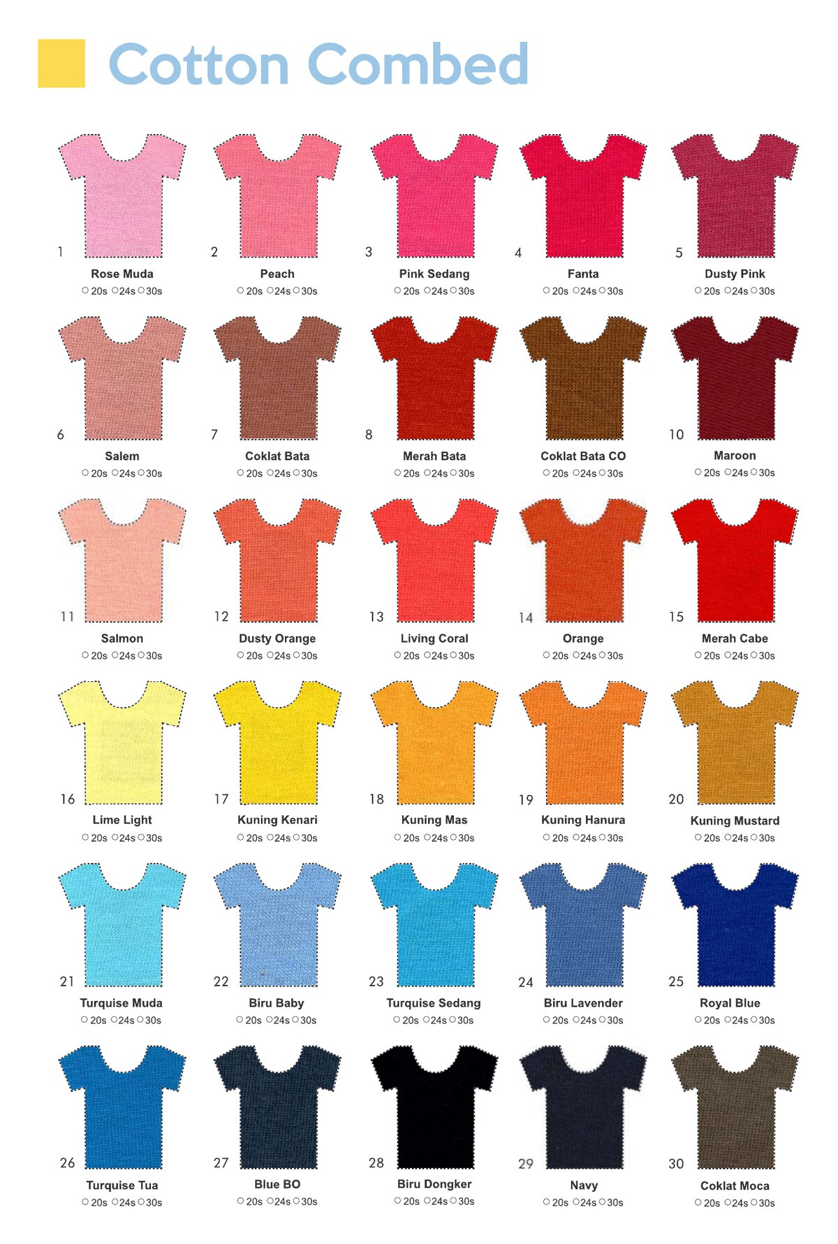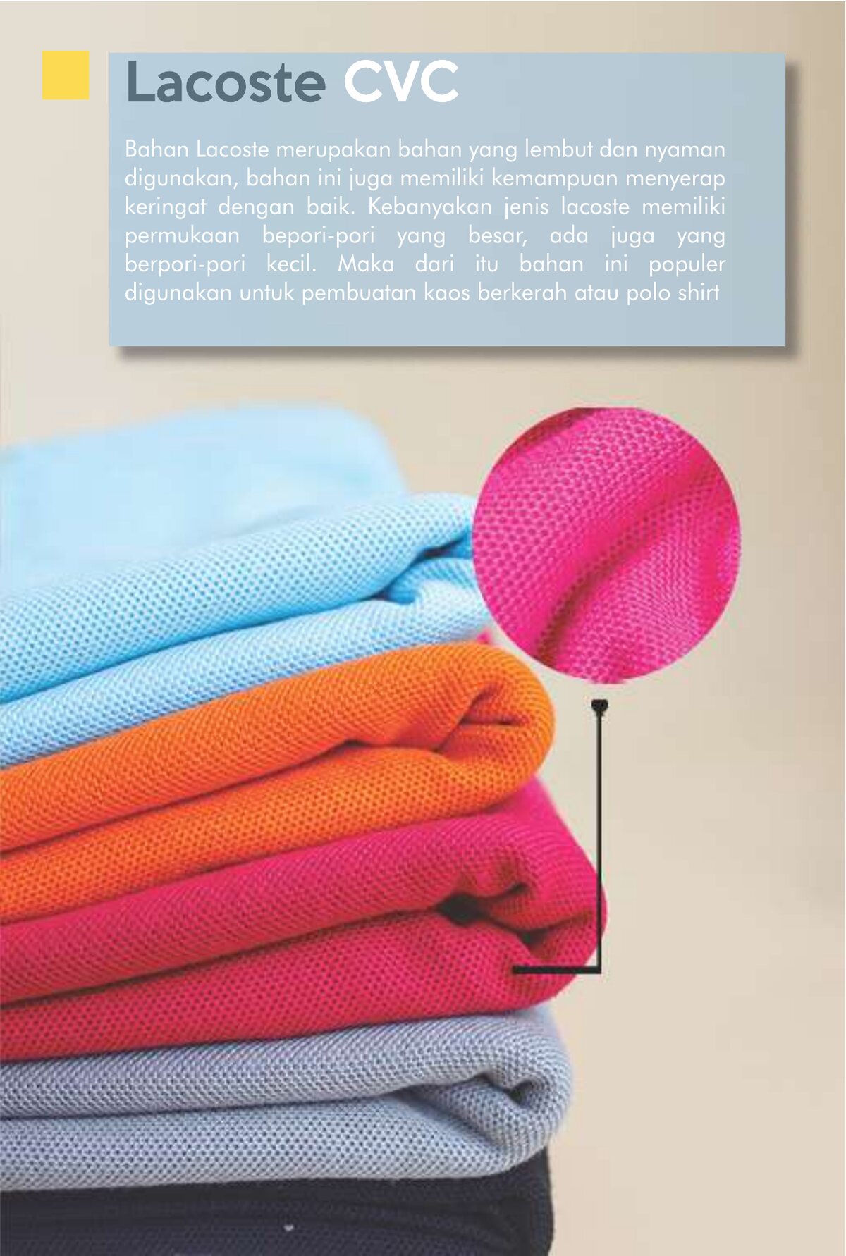 Babyterry dengan komposisi Tetoron Cotton (TC). Lebih dominan polyester sehingga lebih ekonomis dan tidak mudah menyusut.