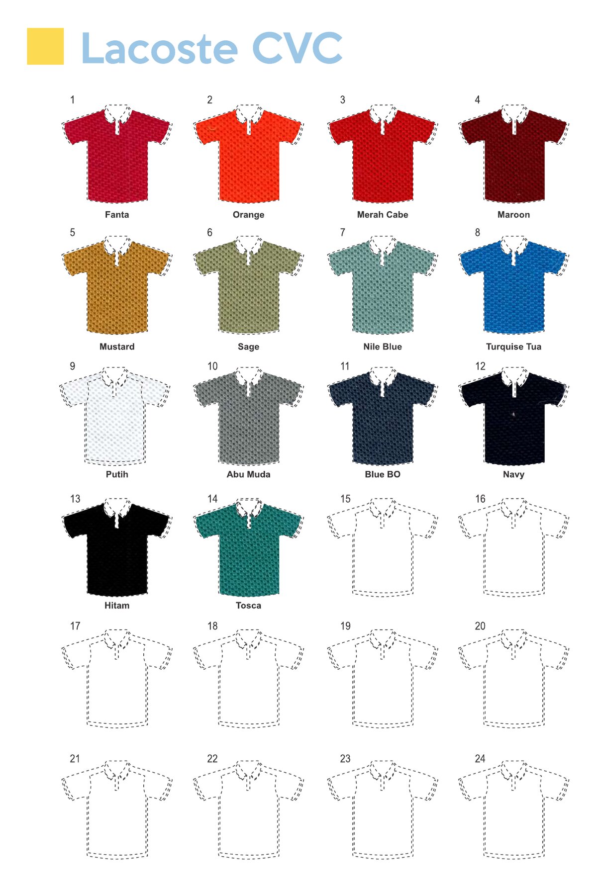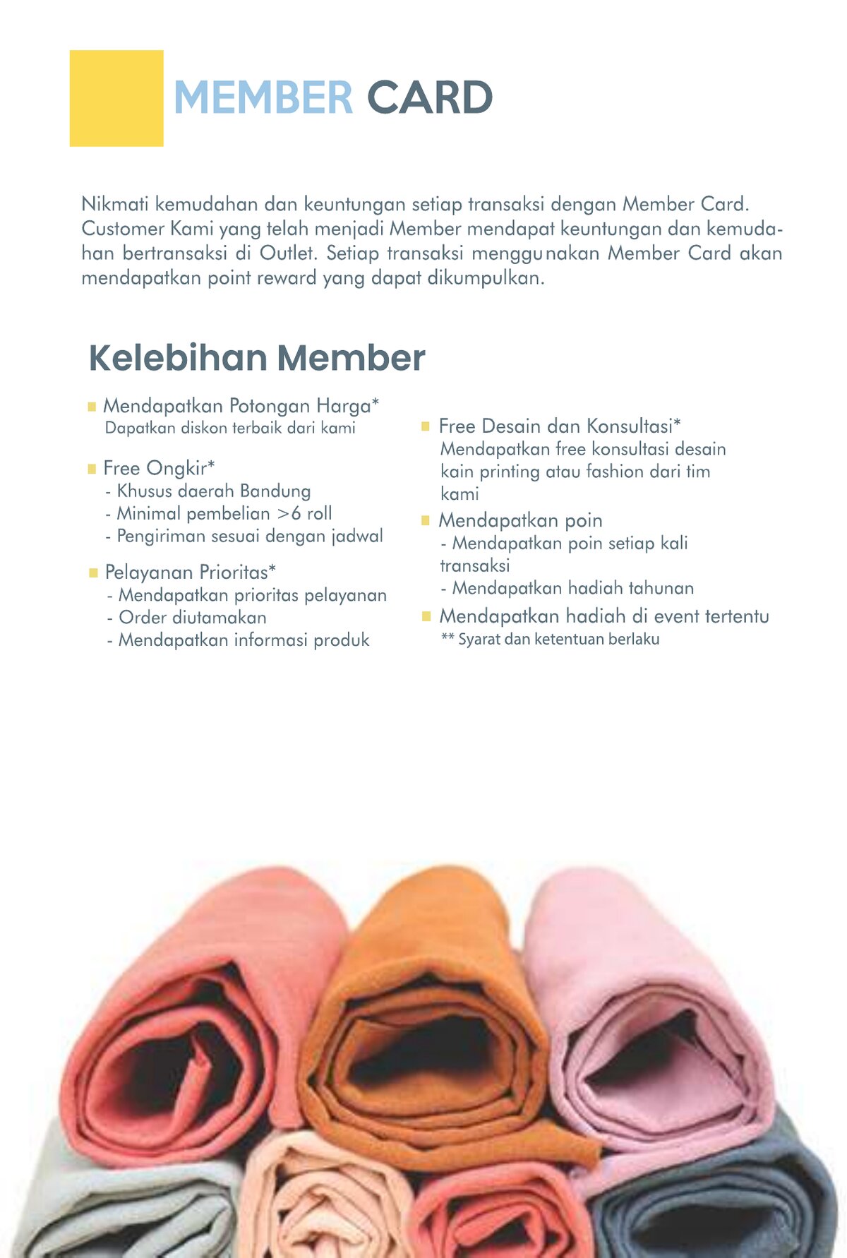 Jelajahi koleksi lengkap kain kami dengan berbagai pilihan warna dan jenis bahan berkualitas tinggi
